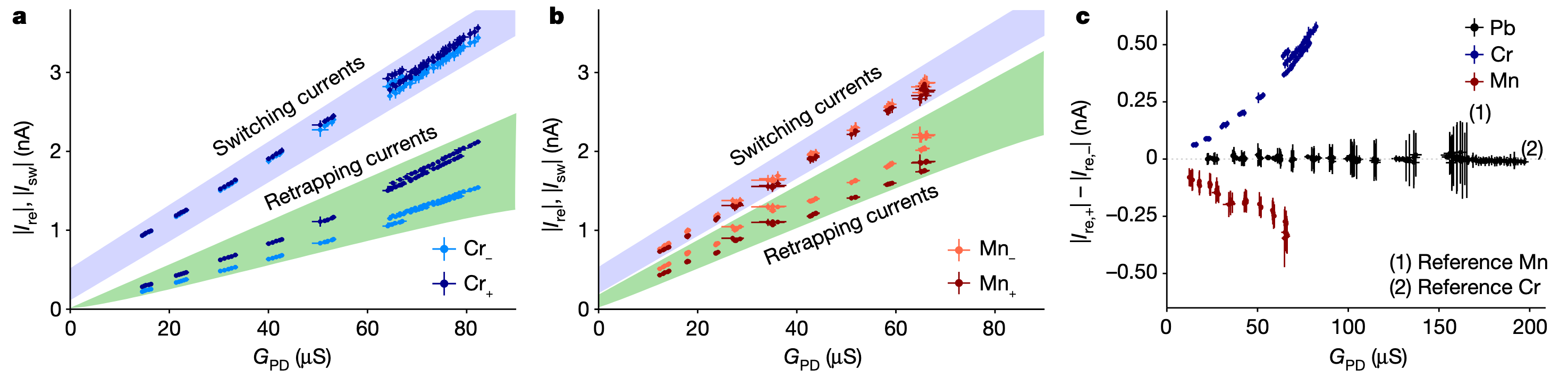 The more interesting is the asymmetry between the $I_{sw}^+$ and $I_{sw}^-$, $I_{re}^+$ and $I_{re}^-$ . They conduct IV data collection at different conductance (at same bias 10meV), obtaining averaged $I_{sw}$ and $I_{re}$. From the graph 3, first we can find out the $I_{re}$ and $I_{sw}$ are both linear to the conductance, which is align with the A-B formula $I_J\propto G$ ( very different from the scenario in multi-band cases!). Second, the asymmetry of $I_{re}$ is much larger than $I_{sw}$, which rull out the possible origin of asymmetry: asymmetric phase-current relation ($I\neq I_c\sin\phi$) .