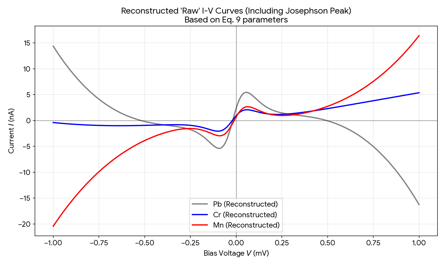 It is worth noting that, the current consist $I_{qp}, I_J, and \quad I_{bias}$. The subtraction is based on fitting: \(\begin{align} I_{\mathrm{meas}}(V)&=I_{\mathrm{j}}(V+V_{\mathrm{offset}})+I_{\mathrm{qp},0}(V+V_{\mathrm{offset}})+I_{\mathrm{offset}},\\I_{\mathrm{j}}(V)&=A\frac{V\delta V}{V^2+\delta V^2}+B\frac{V^3\delta V}{\left(V^2+\delta V^2\right)^2},\\I_{\mathrm{qp},0}(V)&=CV+DV^2+EV^3, \end{align}\) In the Extended Table of [@trahms_diode_nodate], the parameters are calculate by fitting: